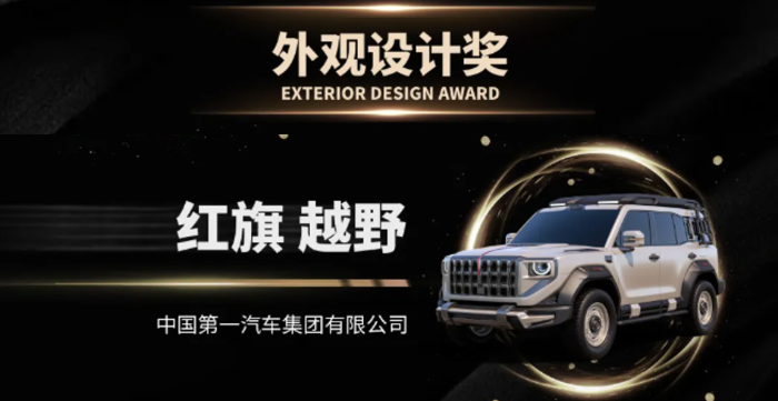 ▲紅旗越野車型榮獲2025汽車設(shè)計評選金乘獎“外觀設(shè)計獎”