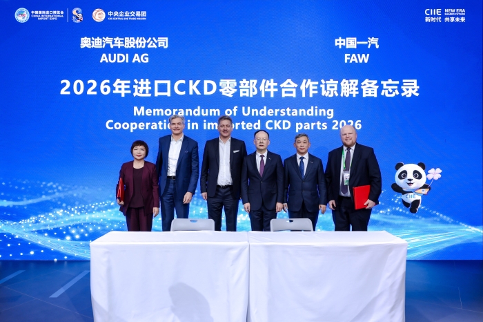 ▲中國一汽與奧迪汽車股份公司簽署2026年進口CKD零部件合作諒解備忘錄