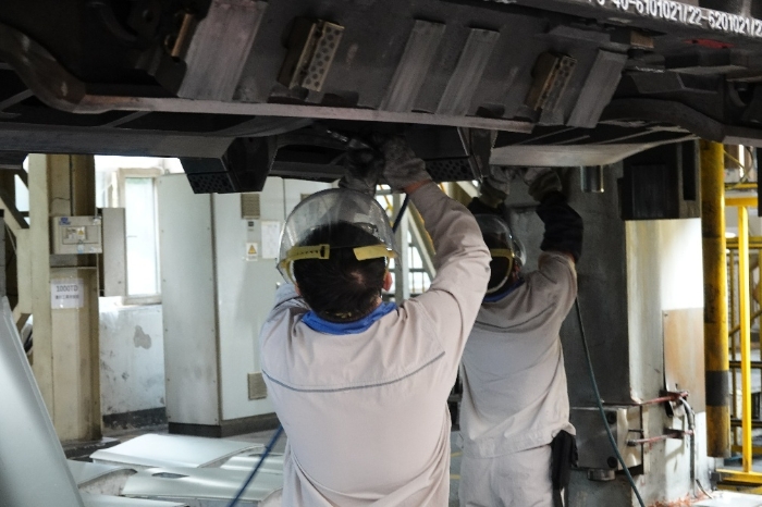 宋春來還介紹了另一項提升生產(chǎn)效率的關(guān)鍵技術(shù)?!叭嵝詨毫霞夹g(shù)也能縮短生產(chǎn)周期,”他指著模具說,“傳統(tǒng)剛性壓料在調(diào)試時需反復(fù)調(diào)整間隙、不斷修磨,耗費大量時間,而柔性壓料能夠靠自身變形彌補誤差,大幅縮短生產(chǎn)周期、減少工作量。”