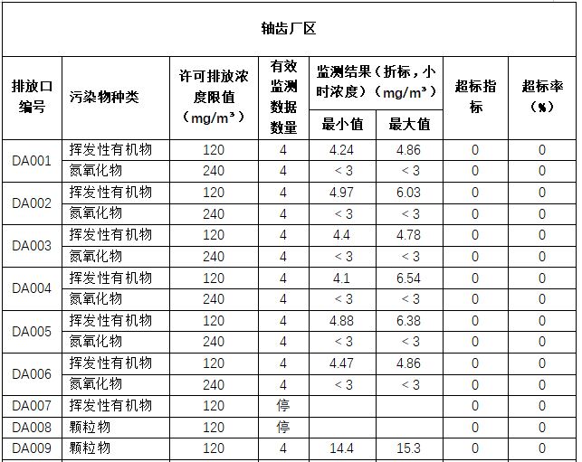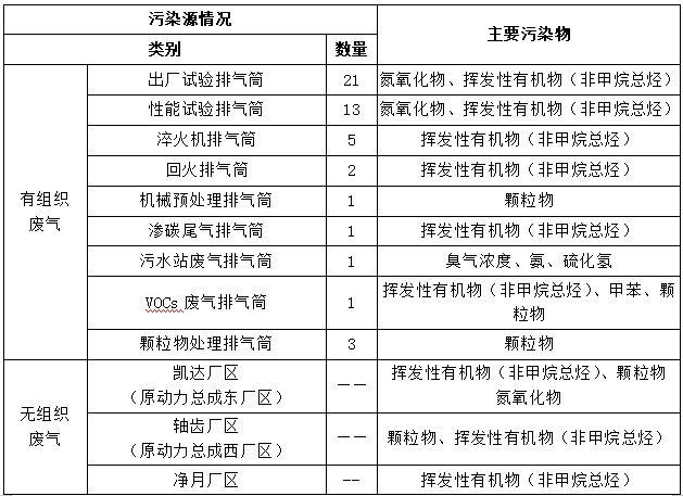 新能源動力總成事業(yè)部出廠試驗室對發(fā)動機試驗尾氣進行收集,通過15m高排氣筒排放;性能試驗室尾氣經(jīng)過三元催化裝置后由15m高排氣筒排放;淬火機及回火機廢氣經(jīng)機械過濾后由15m高排氣筒排放;機械預處理廢氣經(jīng)濕式除塵裝置后由20m高排氣筒排放;軸齒熱處理廢氣經(jīng)“尾氣燃燒+水吸收”后經(jīng)20m高排氣筒排放;VOC廢氣經(jīng)“吸附+燃燒”處理后經(jīng)15m排氣筒排放;激光焊接廢氣經(jīng)濾筒除塵設備處理后經(jīng)15m排氣筒排放;激光清洗、激光打標等廢氣經(jīng)濾筒除塵設備處理后經(jīng)15m排氣筒排放。