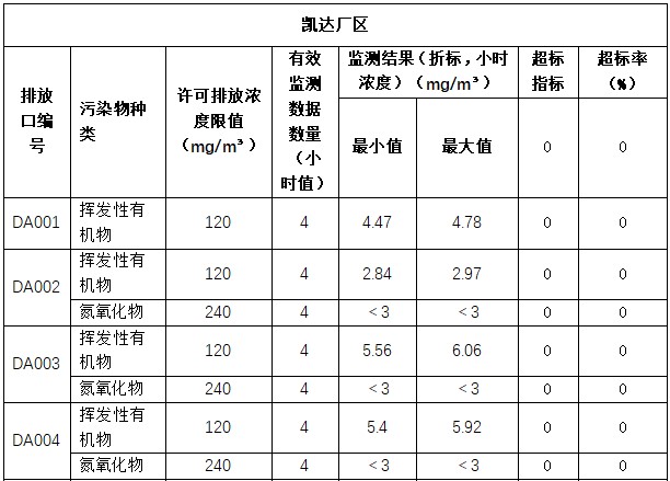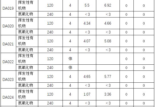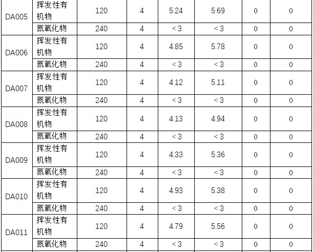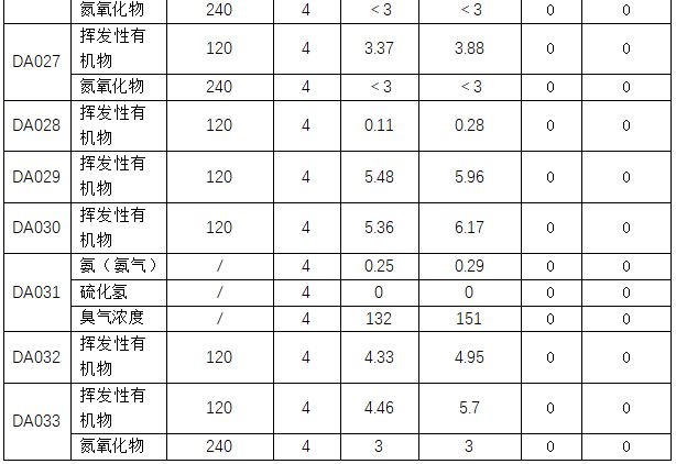 主要污染物排放濃度情況詳見表3至表6。