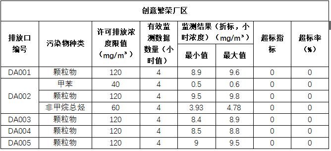 備注:創(chuàng)意廠區(qū)因未驗收,前三個季度未檢測。