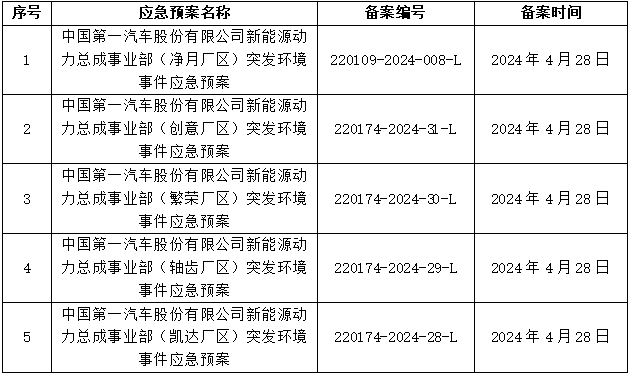 2、新能源動力總成事業(yè)部突發(fā)環(huán)境事件應急預案及備案表(見附件5-附件11)。