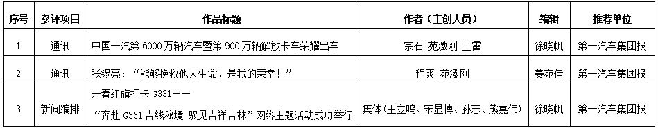 第一汽車集團(tuán)報(bào)參評(píng)第三十四屆“吉林新聞獎(jiǎng)”推薦作品