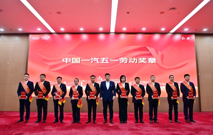 集團(tuán)公司黨委副書記、總經(jīng)理劉亦功為中國(guó)一汽五一勞動(dòng)獎(jiǎng)?wù)芦@得者頒獎(jiǎng)