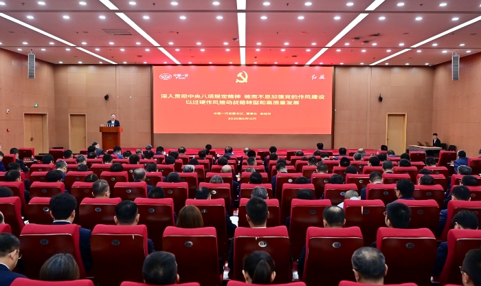 中國(guó)一汽黨委書記、董事長(zhǎng)邱現(xiàn)東為黨員干部講授深入貫徹中央八項(xiàng)規(guī)定精神學(xué)習(xí)教育專題黨課