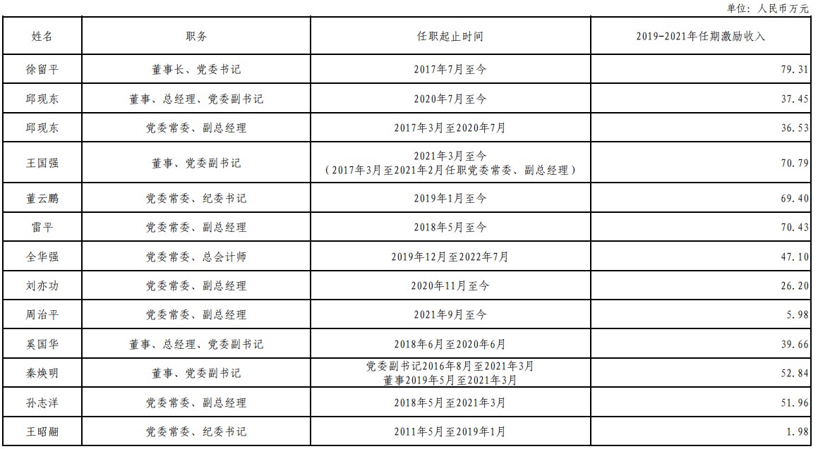 上表披露信息為我公司企業(yè)負責人2019-2021年三年任期激勵收入(稅前),由國務(wù)院國資委核定。