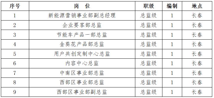 根據(jù)工作需要,現(xiàn)對中國一汽營銷中心(紅旗銷售公司)部分高級經(jīng)理崗位面向社會公開招聘,具體內(nèi)容如下: