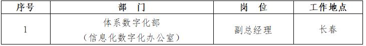 根據(jù)工作需要,現(xiàn)對(duì)體系數(shù)字化部(信息化數(shù)字化辦公室)副總經(jīng)理崗位面向社會(huì)公開招聘,具體內(nèi)容如下: