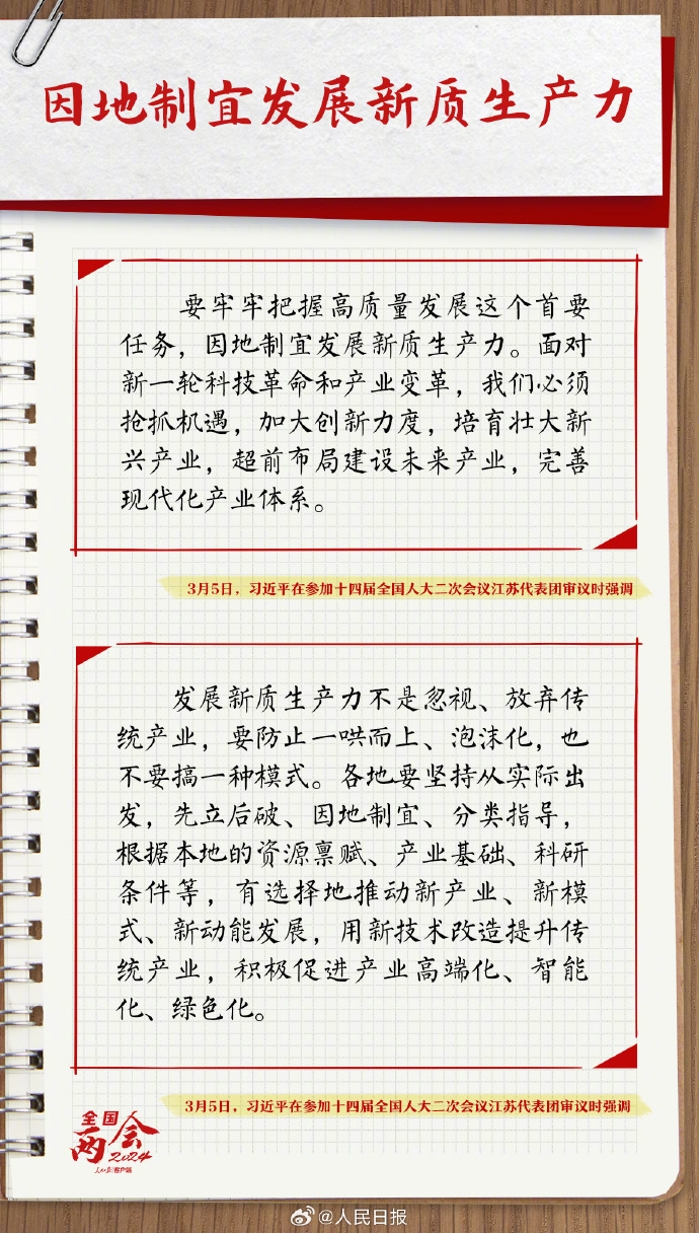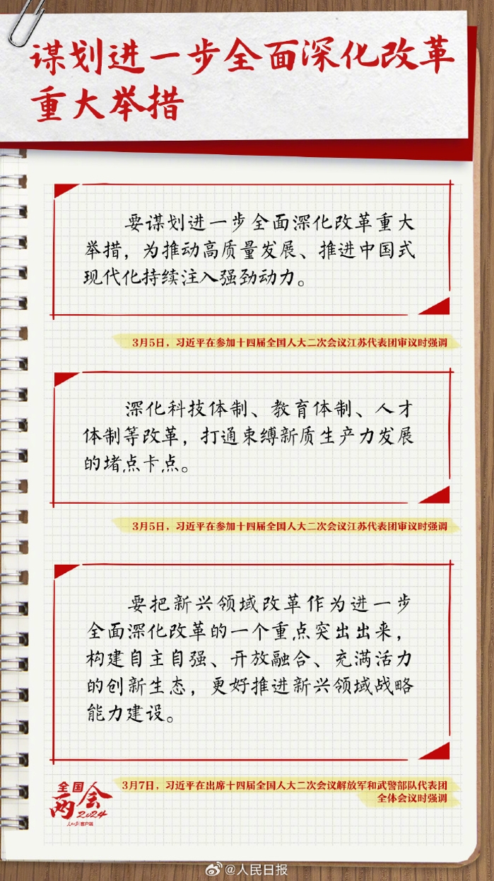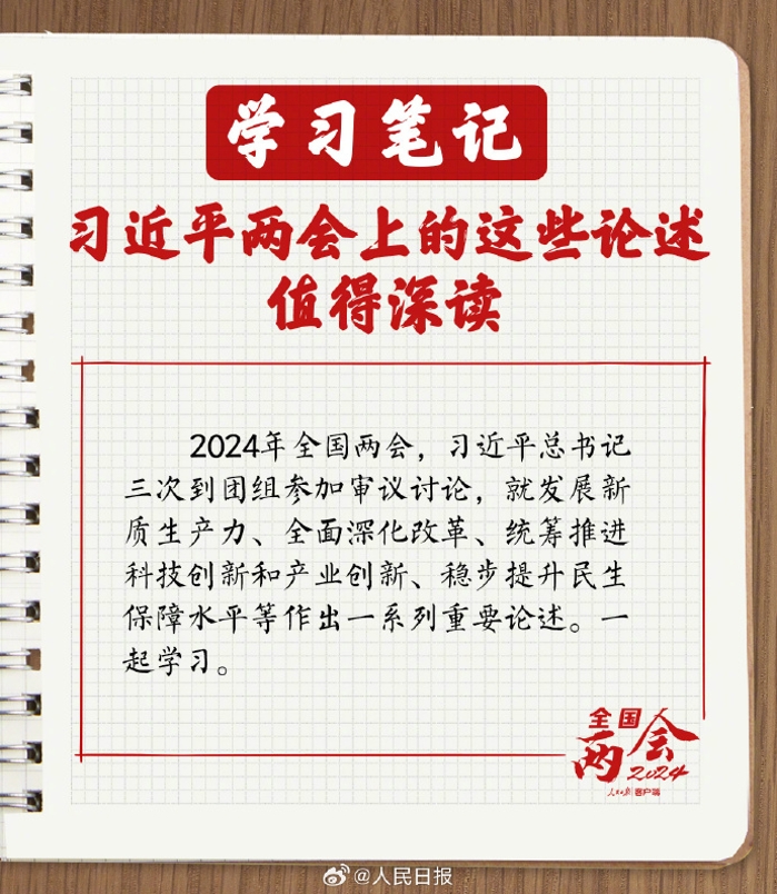 2024年全國兩會,習近平總書記三次到團組參加審議討論,就發(fā)展新質(zhì)生產(chǎn)力、全面深化改革、統(tǒng)籌推進科技創(chuàng)新和產(chǎn)業(yè)創(chuàng)新、穩(wěn)步提升民生保障水平等作出一系列重要論述。