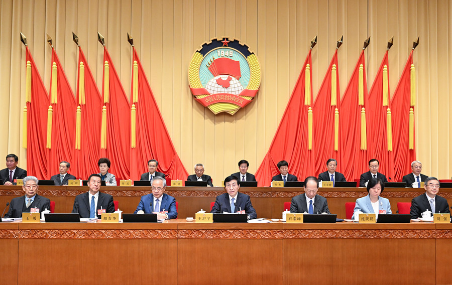 3月9日下午,政協(xié)第十四屆全國(guó)委員會(huì)常務(wù)委員會(huì)第十一次會(huì)議在北京舉行。中共中央政治局常委、全國(guó)政協(xié)主席王滬寧主持會(huì)議。新華社記者 岳月偉 攝