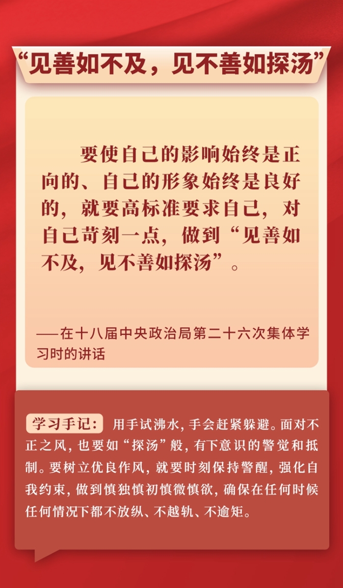 “問渠那得清如許?為有源頭活水來?!标P于作風建設,習近平總書記常引用各種古語典故,有的從警示層面講危害,有的從倡導層面談踐行,旁征博引、畫龍點睛,把古人智慧化用于作風建設的當代實踐,給人以思想啟迪、靈魂洗禮。