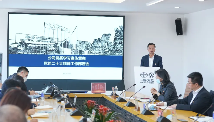 會(huì)議傳達(dá)了集團(tuán)公司黨委關(guān)于學(xué)習(xí)宣傳貫徹黨的二十大精神的工作要求,并從學(xué)習(xí)研討、專(zhuān)題培訓(xùn)、宣講交流、宣傳引領(lǐng)、全員貫徹、實(shí)踐落實(shí)六個(gè)方面對(duì)《一汽-大眾公司黨委學(xué)習(xí)宣傳貫徹黨的二十大精神工作方案》進(jìn)行說(shuō)明、部署工作。