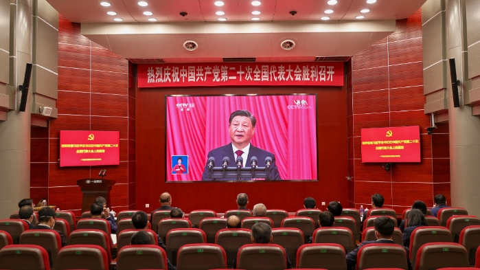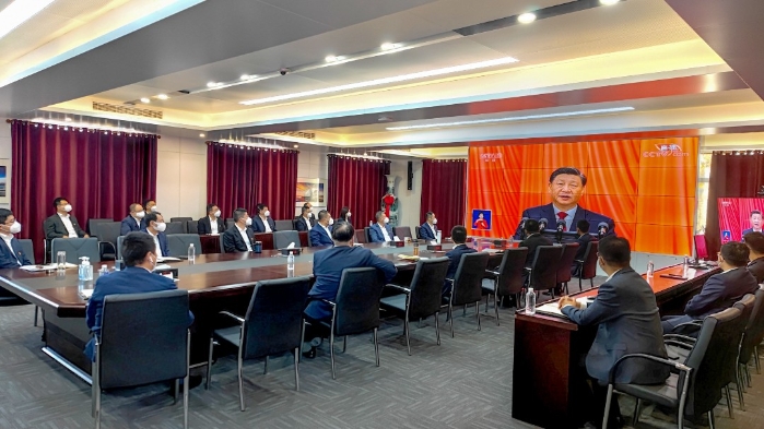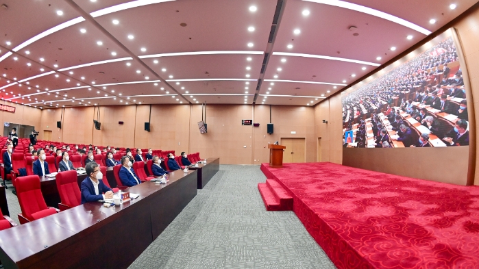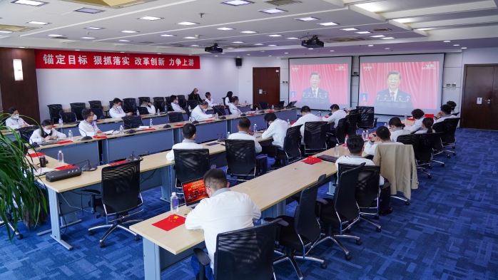 在中國一汽總部會場,中國一汽黨委領導班子成員,總經(jīng)理助理,總部職能部、研發(fā)總院負責人等集中收看。大家聚精會神聆聽,專心致志記錄。