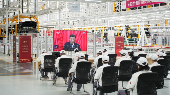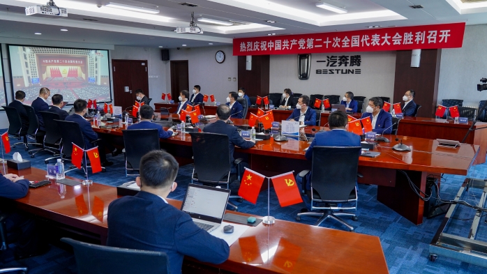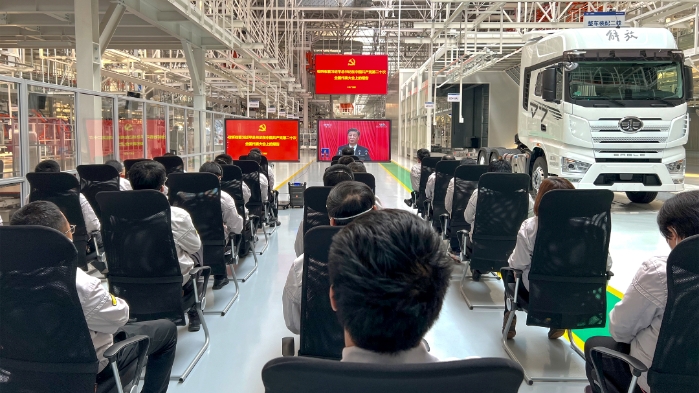 中國一汽在長春及北京、天津、青島、成都、佛山等外埠基地所在13座城市設立500個會場,近萬名黨員干部參與集中收聽收看,其他干部職工通過多種形式開展收聽收看,總計覆蓋人數(shù)超4萬人。