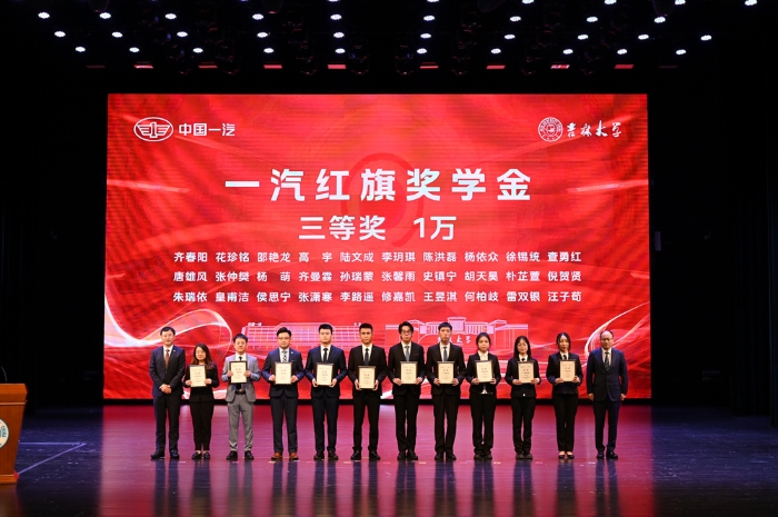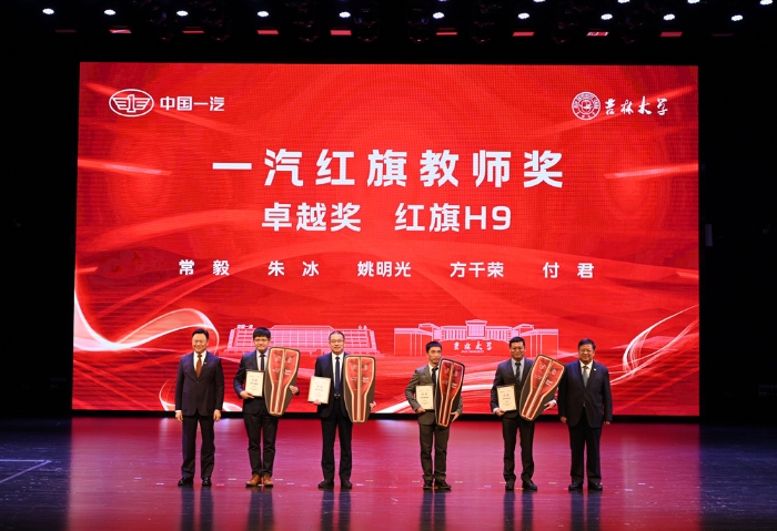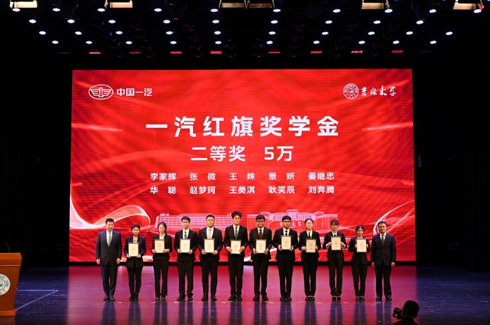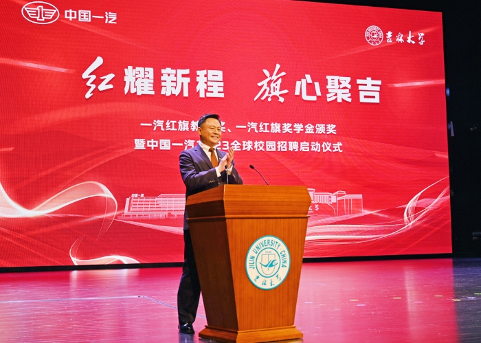 徐留平在致辭中表示,設(shè)立一汽紅旗教師獎(jiǎng)、一汽紅旗獎(jiǎng)學(xué)金,是中國(guó)一汽落實(shí)中央人才強(qiáng)國(guó)戰(zhàn)略,助力吉林大學(xué)教書(shū)育人,積極履行社會(huì)責(zé)任的重要舉措。面向未來(lái),中國(guó)一汽將持續(xù)深化與吉林大學(xué)戰(zhàn)略合作,不斷做好獎(jiǎng)教獎(jiǎng)學(xué)工作,大力支持廣大青年教師和優(yōu)秀學(xué)子服務(wù)國(guó)家社會(huì)、書(shū)寫(xiě)精彩人生。真誠(chéng)歡迎胸懷赤子之心、摯愛(ài)汽車事業(yè)、情系民族品牌的優(yōu)秀學(xué)子,投身到中國(guó)一汽創(chuàng)新發(fā)展的宏大實(shí)踐中來(lái),共同為打造世界一流汽車企業(yè)、強(qiáng)大中國(guó)汽車產(chǎn)業(yè)、全面建設(shè)社會(huì)主義現(xiàn)代化國(guó)家貢獻(xiàn)智慧和力量。